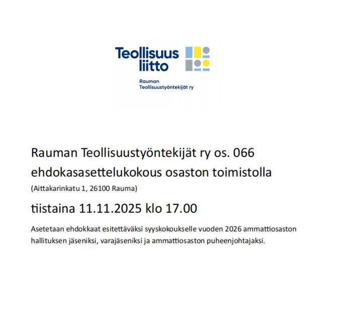 Työsuojeluvaalit ja valinnoista ilmoittaminen (27.10.2025) |